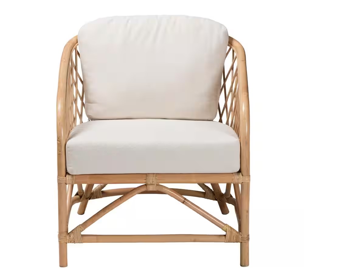 Designed with comfort in mind, the Patsy comes with plush, foam-filled cushions upholstered in soft fabric that adds a gentle contrast to the warm, earthy tones of the rattan. Whether you’re styling a sunlit reading corner, relaxing in a bedroom retreat, or accenting a boho-inspired living room, this chair adds a calm and natural aesthetic.