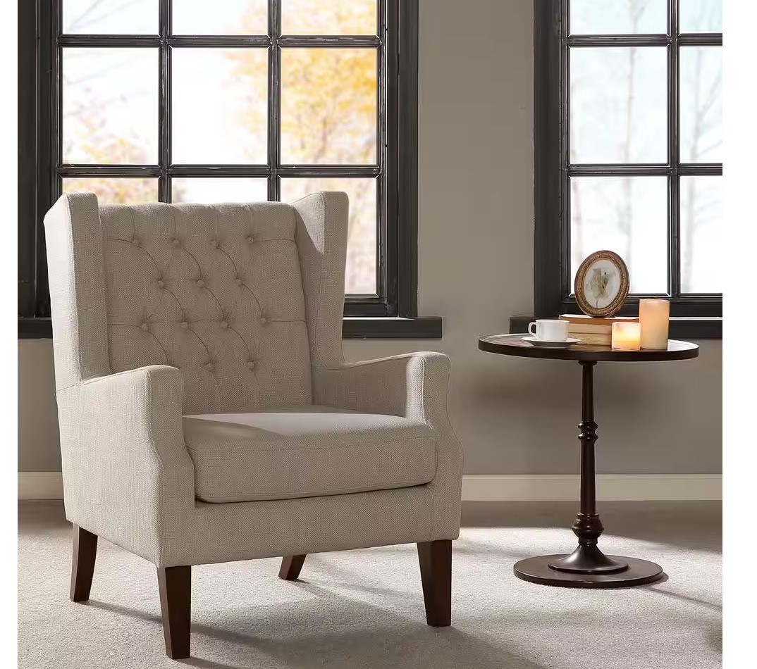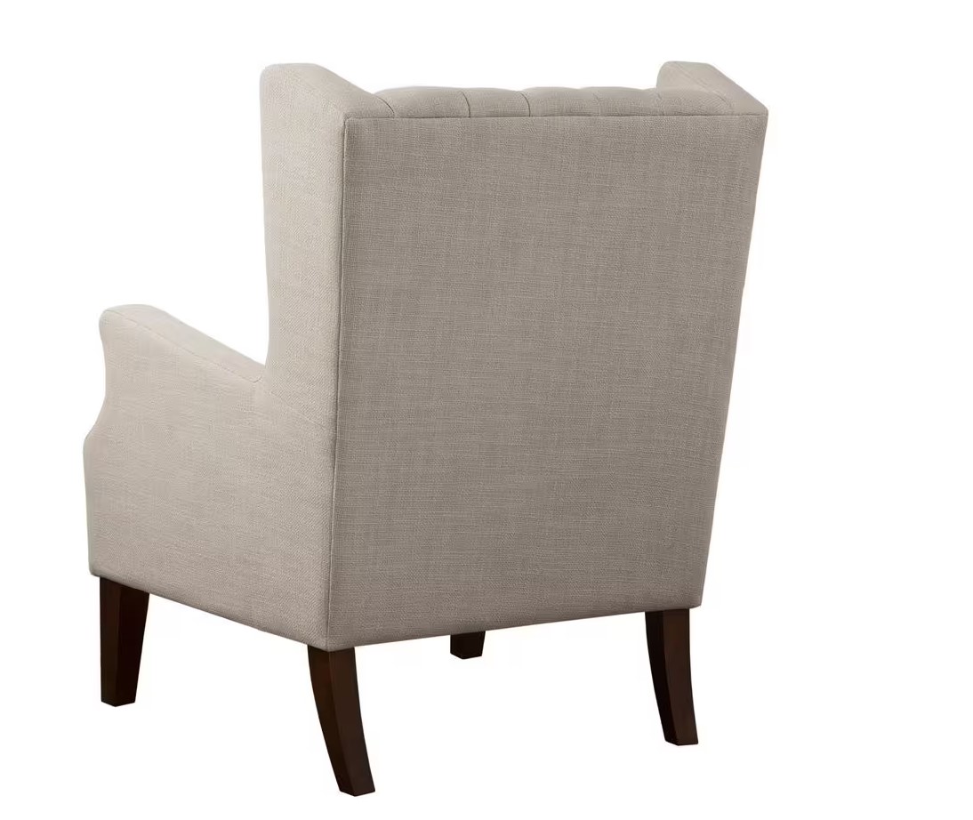 With its button-tufted backrest, sloped arms, and elegant wingback silhouette, this chair effortlessly balances form and function. The casual twist comes from the soft, linen-look woven fabric that provides a laid-back yet sophisticated vibe. Whether you’re curling up with a good book or hosting guests, this chair offers the ideal spot to unwind in style.