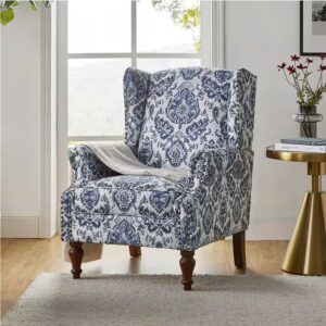 Gille Traditional Navy Upholstered Wingback Accent Chair with Spindle Legs